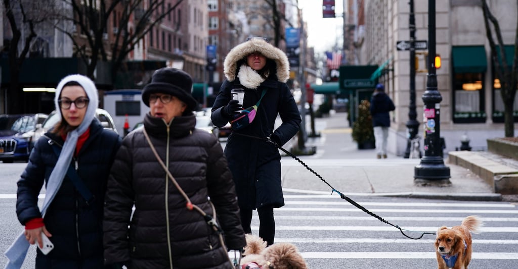 People walk their dogs in Manhattan during cold weather in New York City, U.S., January 5, 2025.
